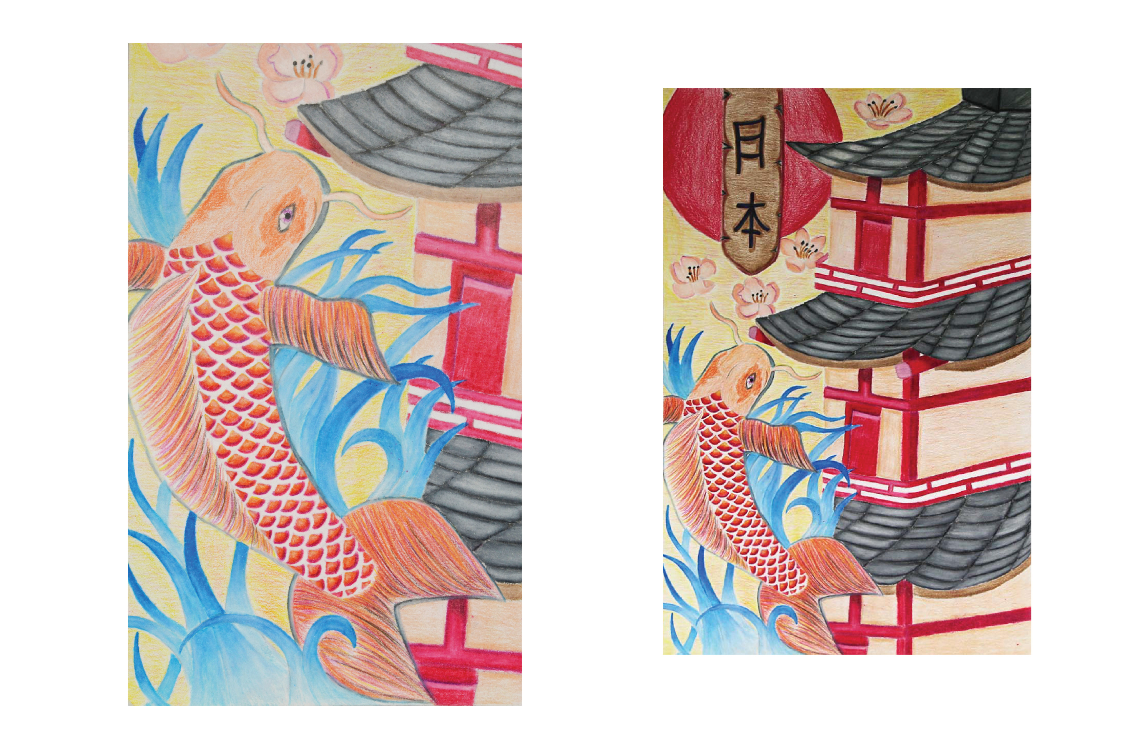 It is a Japanese Totem Pole drawing made with prismacolor pencils.